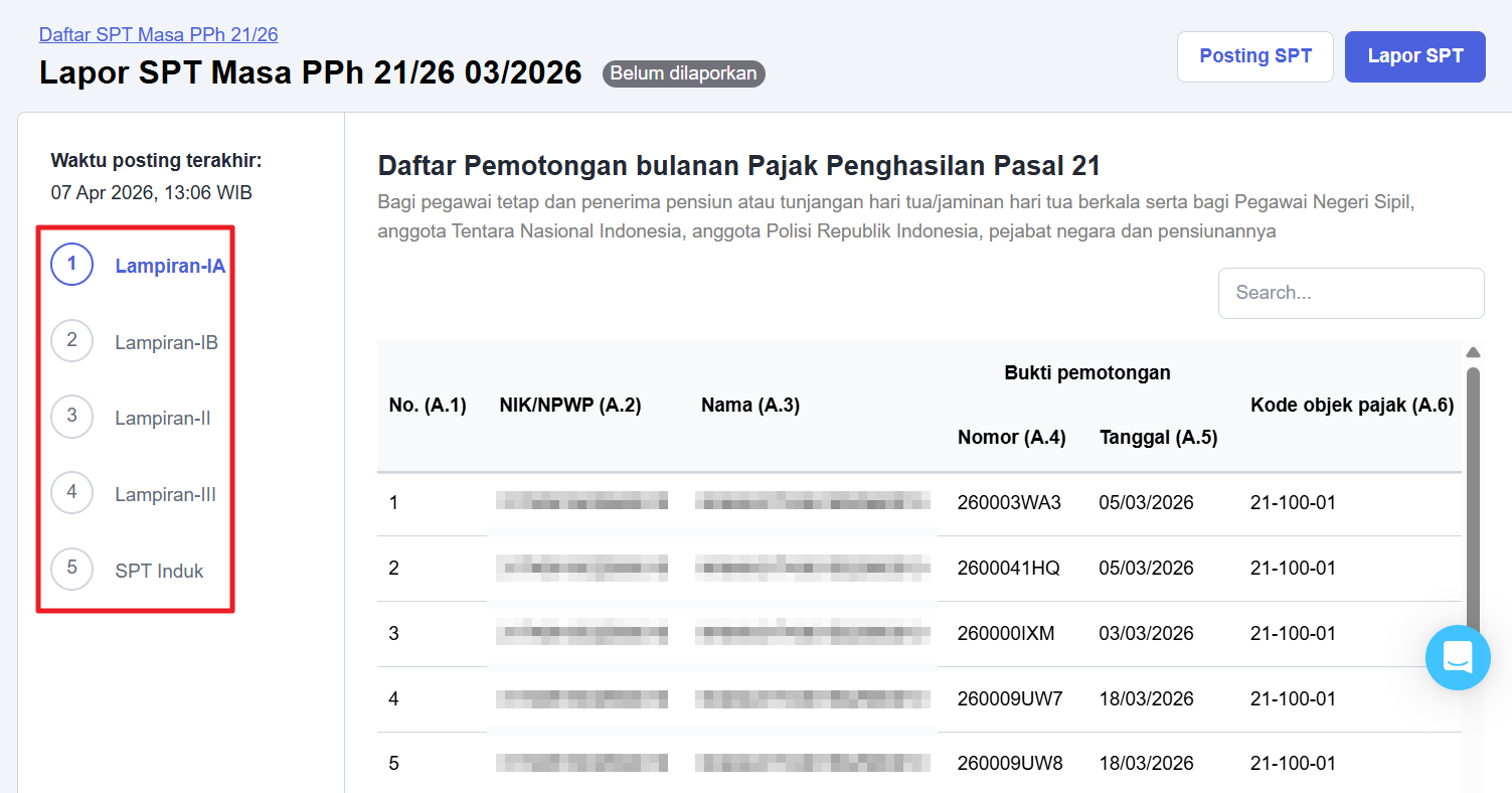 Anda dapat melihat detail setiap lampiran yang ada pada SPT ini yang terdiri dari: