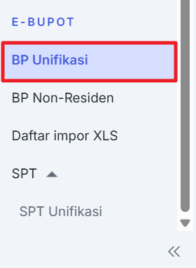 Klik "BP Unifikasi" pada bagian E-Bupot.