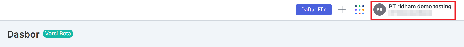 Klik "nama perusahaan" di pojok kanan atas, lalu pilih salah satu perusahaan yang ingin Anda kelola.