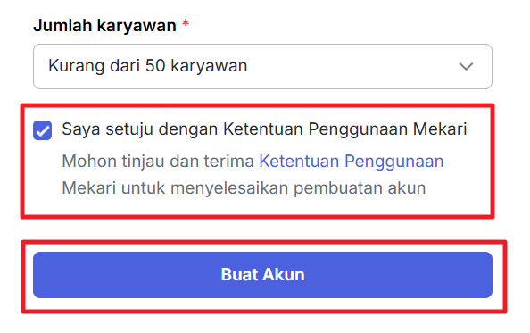 Setelah itu, centang pada bagian "Saya setuju dengan...." lalu klik "Buat Akun".