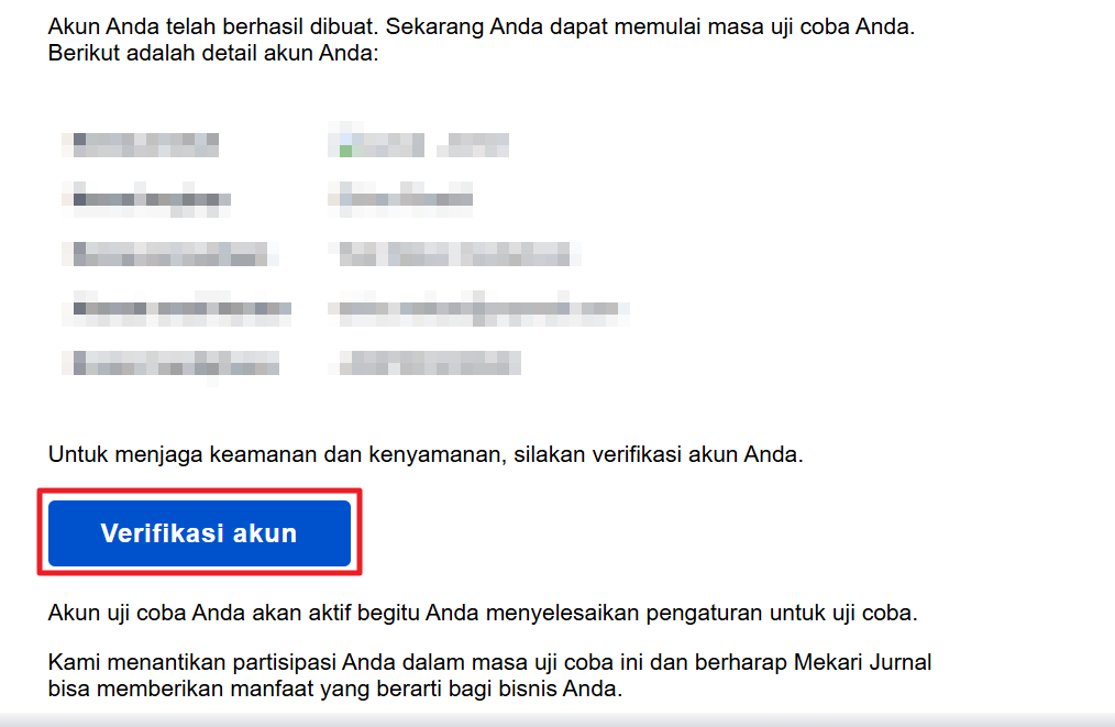 Lalu Anda akan menerima email berikut dan klik "Verifikasi akun".