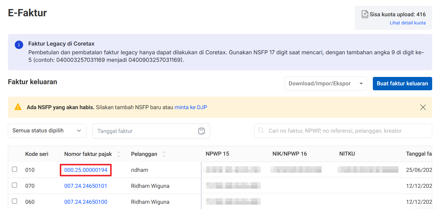 Masuk ke halaman E-Faktur.